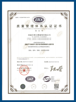 公司已通過ISO9001:2015質量管理體系認證、ISO14001:2015環境管理體系認證、ISO45001:2018職業健康安全管理體系認證。產品已通過中國檢驗認證集團檢測。企業信用等級為AAA。